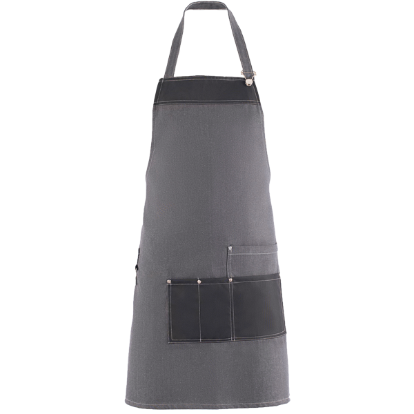 Ποδιά τύπου μπροστέλα με μπροστινές τσέπες και προσαρμοζόμενο μέγεθος.